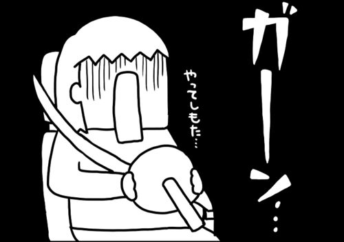 産後のために…と妊娠中に車の運転の練習をしていたチーコさん。ある日、一人で運転しているときに細い道で対向車とすれ違うことに。恐る恐る進んでいたのですが、大きなお腹がつっかえて相手の車との間隔が見づらい!そして…ザスッと擦れる音が⁉