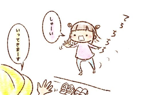 1年生のお兄ちゃんが出かけようとすると、1歳7ヶ月の妹は玄関まで歩いて一生懸命お見送りします。時には忘れ物を玄関まで届けたり、靴を履いて一緒に出かけようとしたり。すずかさんはそんな光景を見るのが大好き。一方パパが出かけるときは…