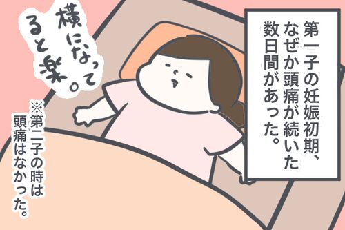 第一子の妊娠初期、頭痛に悩まされた時がありました。横になっていれば楽なんですが、数日間こめかみのあたりが痛くて・・・。