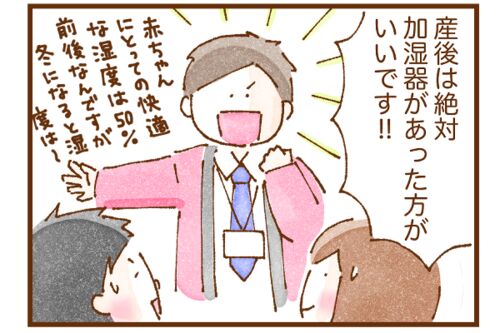 いよかんさんは昔から風邪を引くことはあまりありませんでしたが、2〜3カ月に1回、とにかく風邪を引くことが多かったのがご主人。ベビーグッズを揃えているときに加湿器も必要では?と家電量販店へ行くことに。