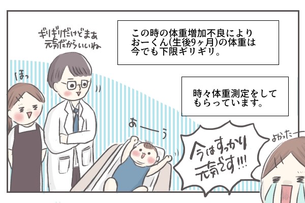 体重は今でも下限ギリギリのため、時々小児科で体重測定をしてもらっています。