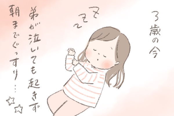 今では朝までぐっすり。弟の夜泣きにも全く反応せず寝られるようになりました。