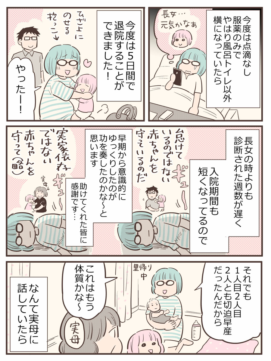 罪悪感はありましたが、そうしたら出産のときまで再び入院することはありませんでした。