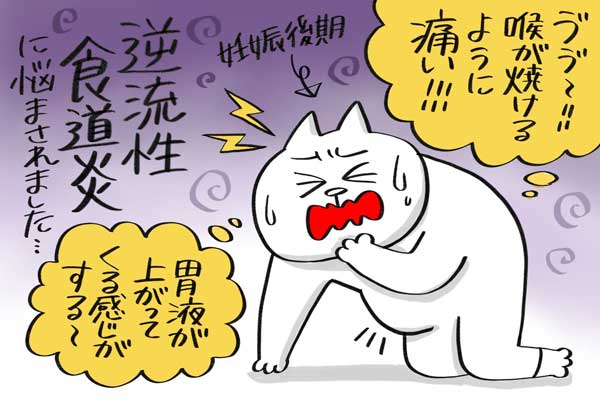 妊娠後期になると胃液が頻繁に逆流するようになり、それが何度も続くので喉や食道のあたりに激痛が走るようになってしまいました。この時に不安になり自分でネットでこの症状を調べ、これは逆流性食道炎なんだなと分かりました。