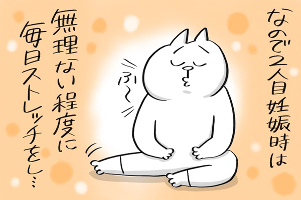 そして血行が悪くならないように、お腹が貼らない程度に無理ない姿勢で毎晩ストレッチをしたり、毎日の散歩や、妊婦用の筋トレを配信している動画を参考にして、適度な運動も続けていました。
