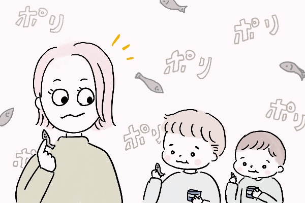 他のごはんも一応一通りは食べられたのですが、「食べたい」という気持ちが湧かずニオイに敏感で気持ち悪さが残るので、義務的に口に入れて飲み込んでは小魚をポリポリしていました。起きてポリポリ。仕事中もポリポリ。風呂上りにポリポリ。そんな私を見て子どもたちもポリポリ。ポリポリ小魚のおかげでカルシウムは結構摂取できたんじゃないかと思います。
