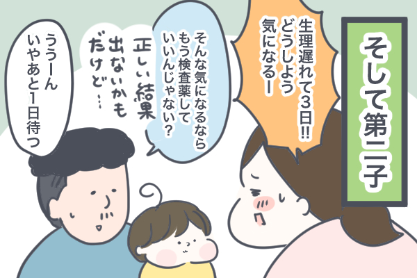 「いやでもあと1日待つ!私待つわ!!!!」と言い、結果第二子は3日フライングして検査薬を使いました!