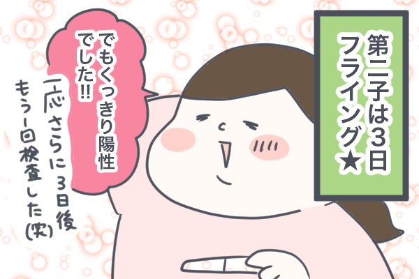 「うわぁーー!!やったーーー!」と喜ぶも、一応フライングの結果なので、数日後にもう一回検査をしました(笑)